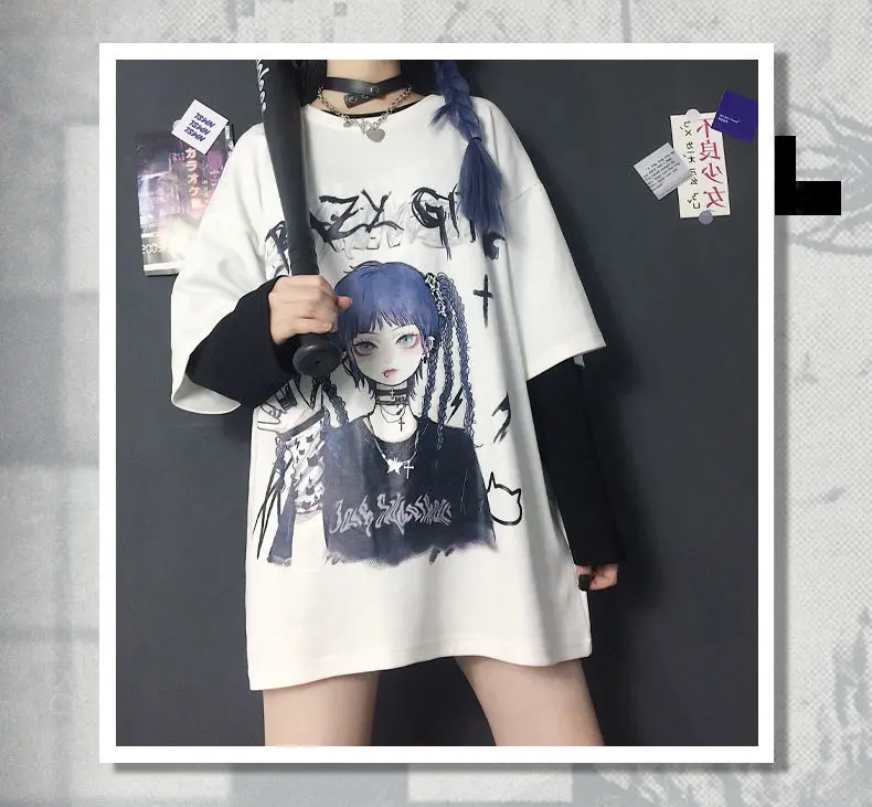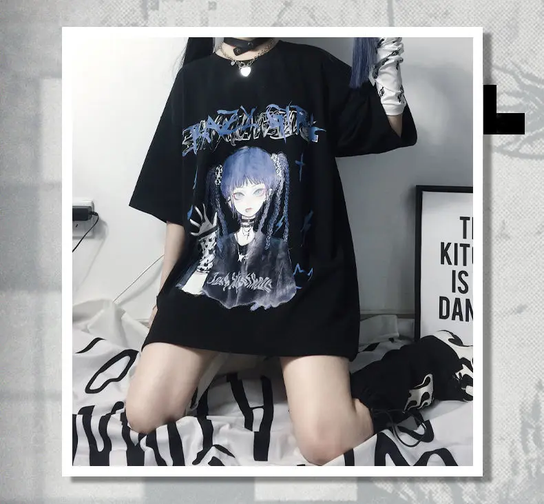 Женская футболка с коротким рукавом, в готическом стиле, свободная, с принтом в стиле Харадзюку