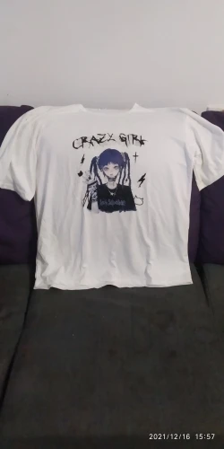 материал ожидался намного лучше, нежели этот очень тонкий, сидит не так как на фото, но тоже неплохо, принт наклейка,но она хорошая, крепкая, взяла самый большой размер, мой размер xs и только слегка оверсайз, рост 156 см