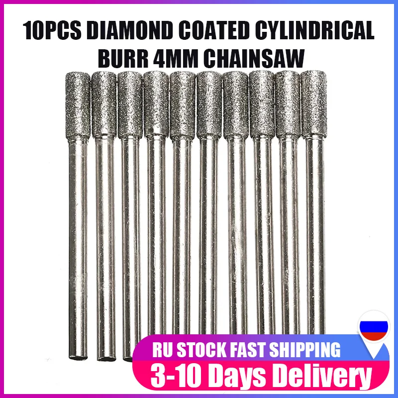 10 шт., цилиндрические заусенцы с алмазным покрытием для ЗАТОЧКИ ЦЕПНОЙ ПИЛЫ 4 мм