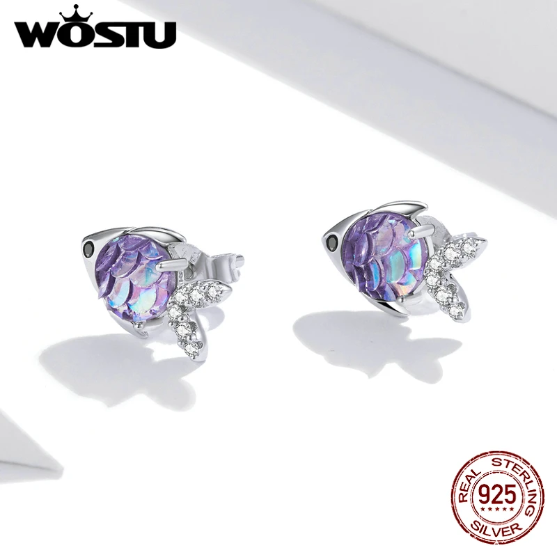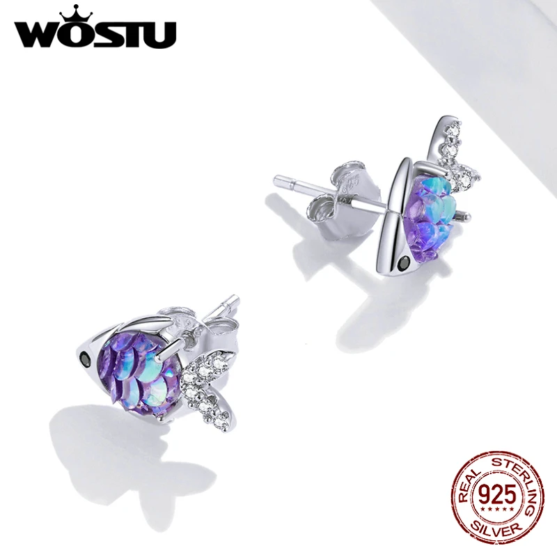 WOSTU Настоящее 925 стерлингового серебра милые серьги-гвоздики в в...