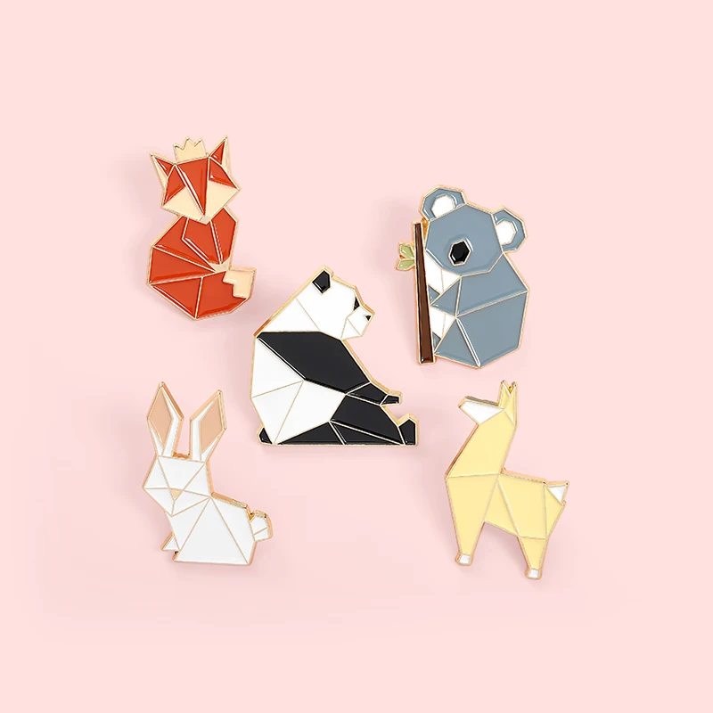Оригами, лиса, панда, кролик, коала, альпака, эмалированная булавка...