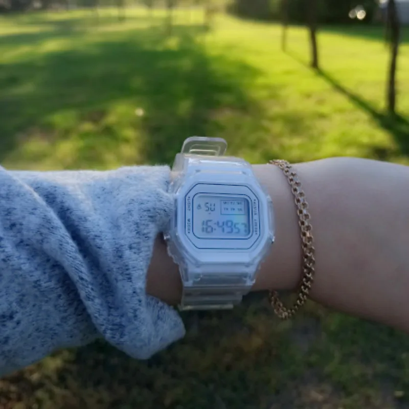 Прозрачные Цифровые светящиеся часы, модные женские студенческие сп...