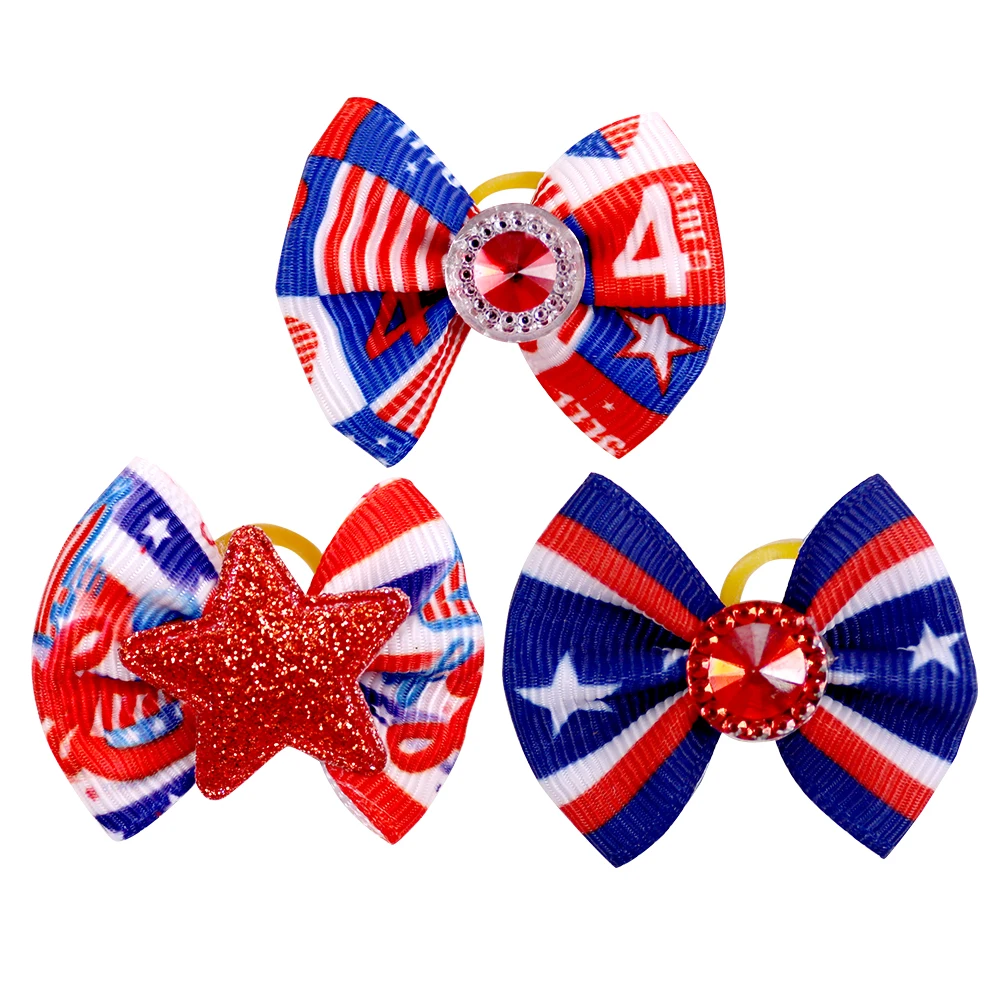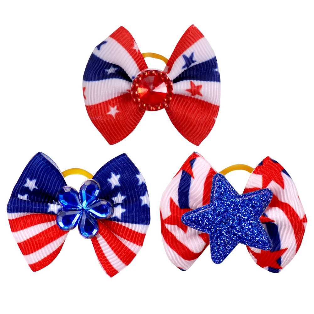 Товар:20 шт/10 пар банты для собак День Независимости собака волосы лук резиновые ленты аксессуары для собак товары для ухода за маленькими собаками