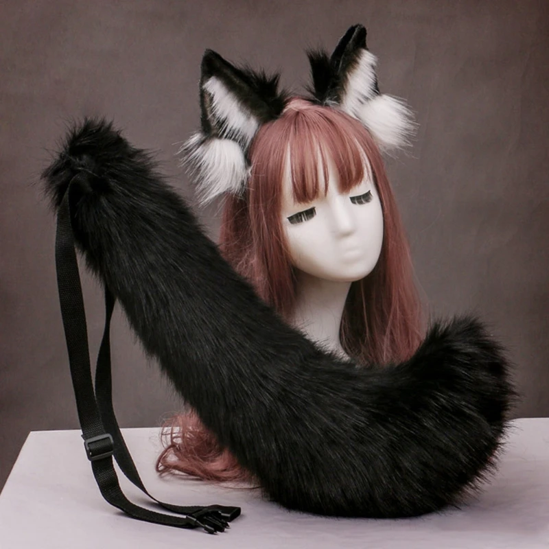 Новинка 2021, повязка на голову с ушками волка из искусственного меха и пушистый Anmimal, комплект с длинным хвостом, костюм для косплея