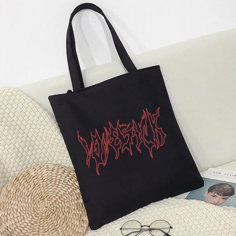 Японская темная сумка-шоппер, Холщовая Сумка y2k с готическими волн...