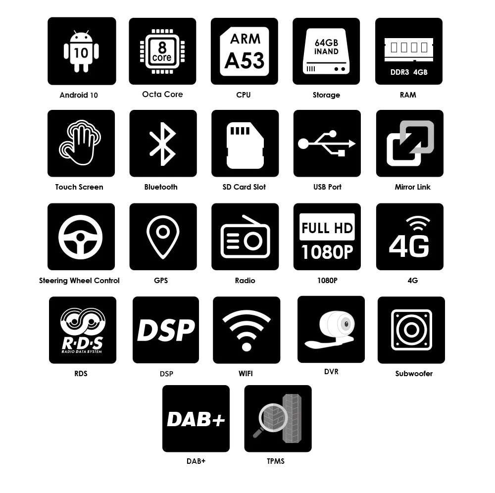 Универсальный Автомобильный плеер Android 10, 4 Гб ОЗУ, 64 Гб ПЗУ, ...