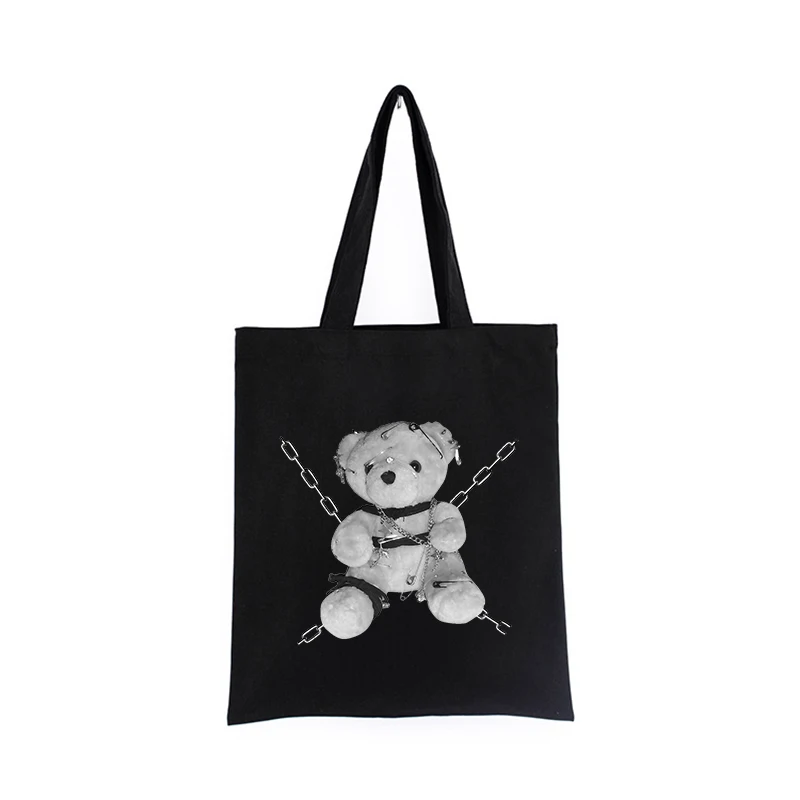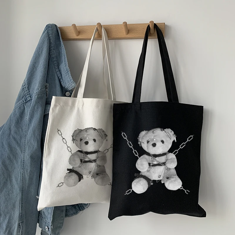 Холщовая Сумка в японском готическом стиле с медведем, повседневная Винтажная сумочка-Шоппер в стиле Харадзюку, Забавный мультяшный мешок на плечо в стиле Харадзюку, в стиле хип-хоп