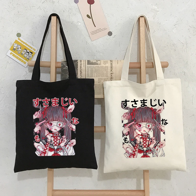 Холщовая Сумка унисекс в стиле аниме, японская Готическая сумка-шоп...