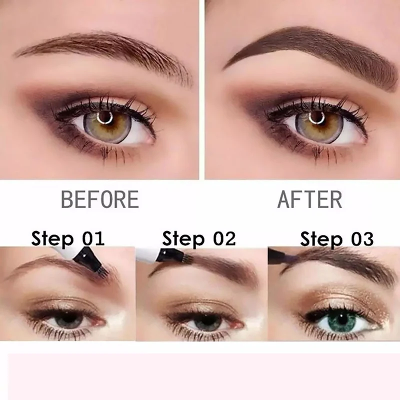 Натуральный карандаш для бровей, водонепроницаемый, 4 вилки, наконечник для бровей, карандаш для татуировки, Длительное Действие, карандаш для бровей, карандаш с триммером, инструменты для макияжа глаз