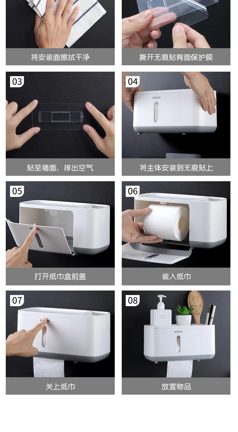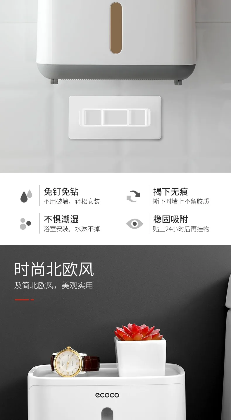 Водонепроницаемый держатель для туалетной бумаги ECOCO, настенный д...