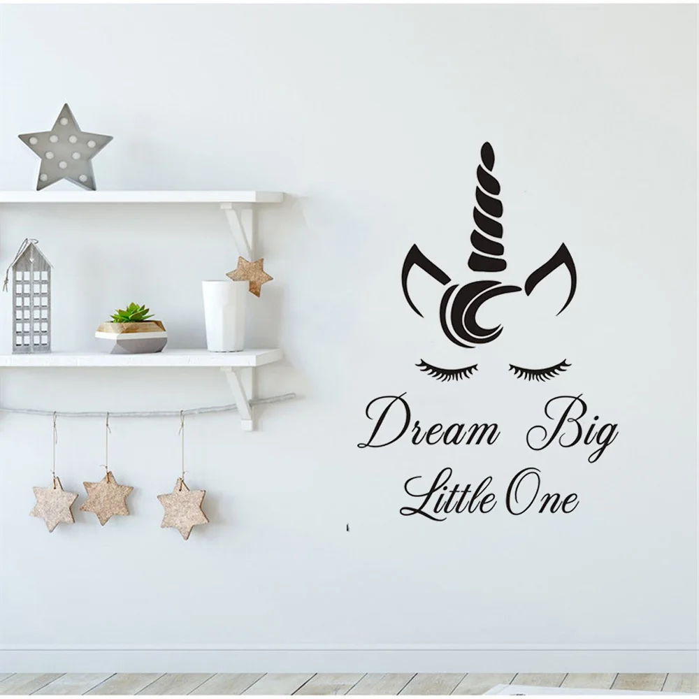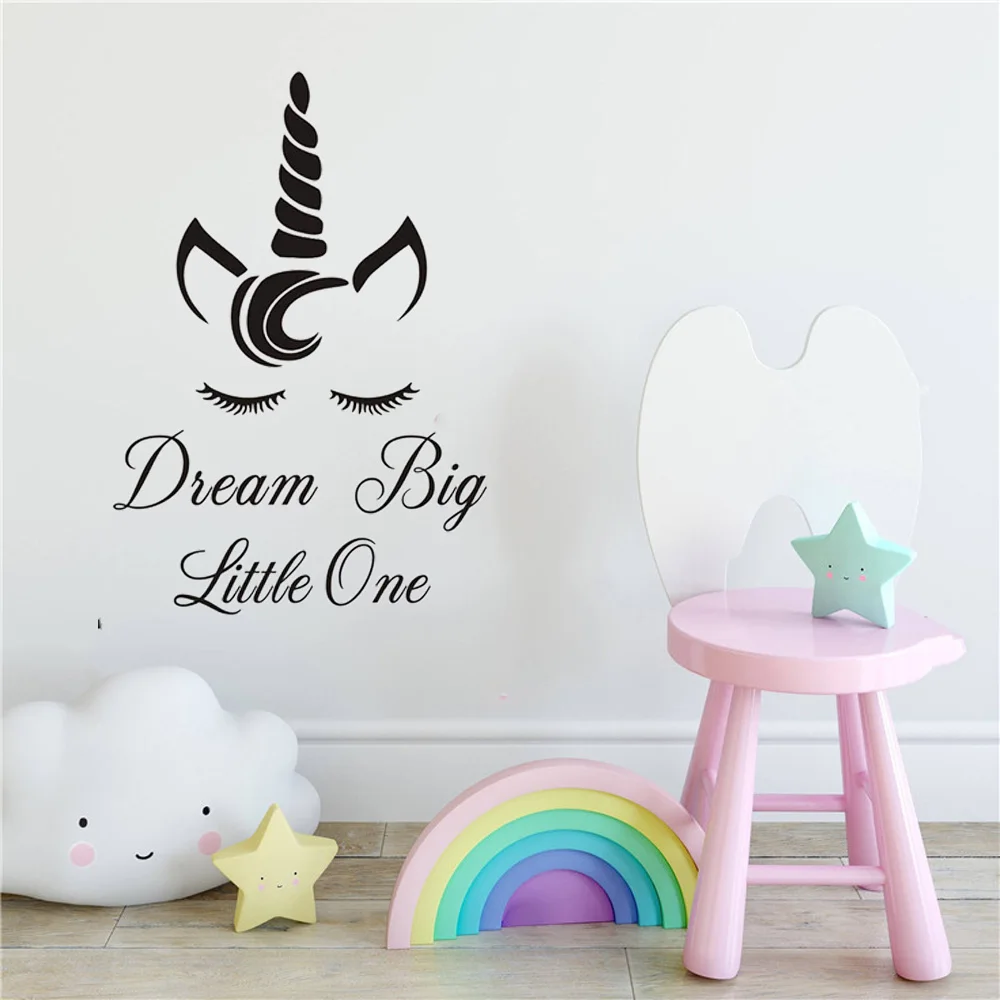 Dream Big малыш Цитата стены наклейки виниловые наклейки на стены Детский жакет из денима для девочки; Украшение в виде единорога обои дом стены искусства