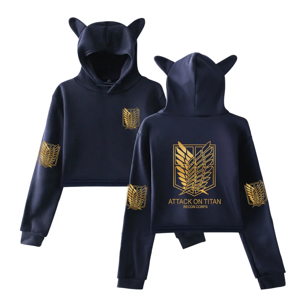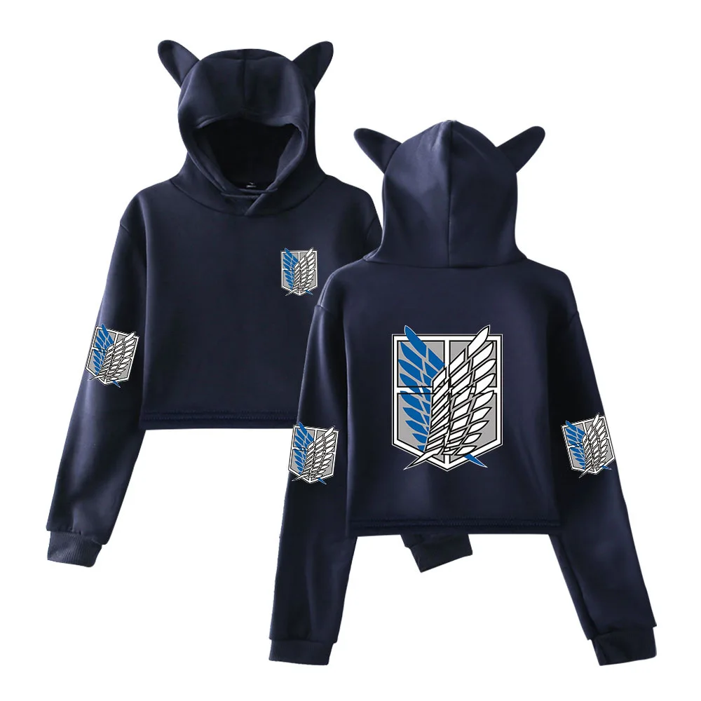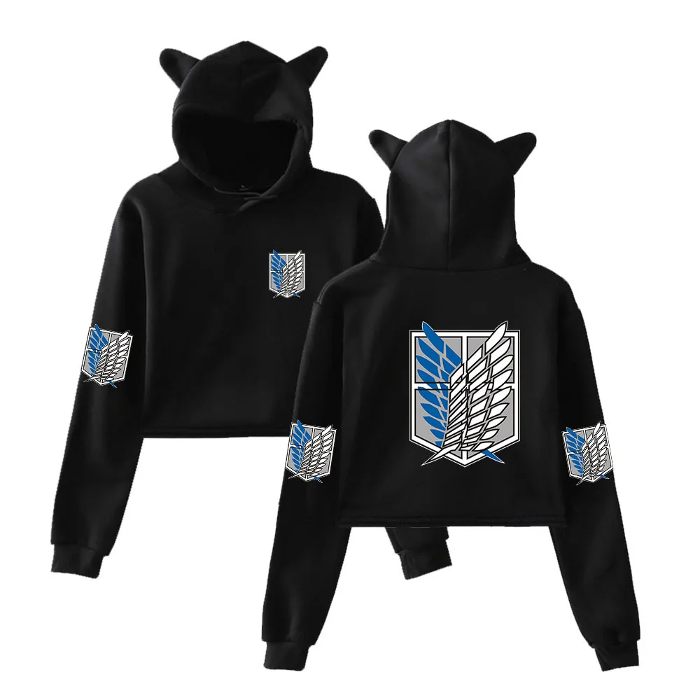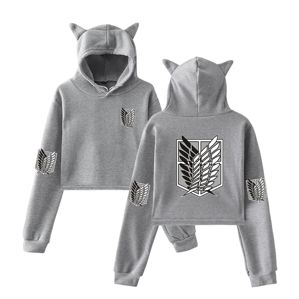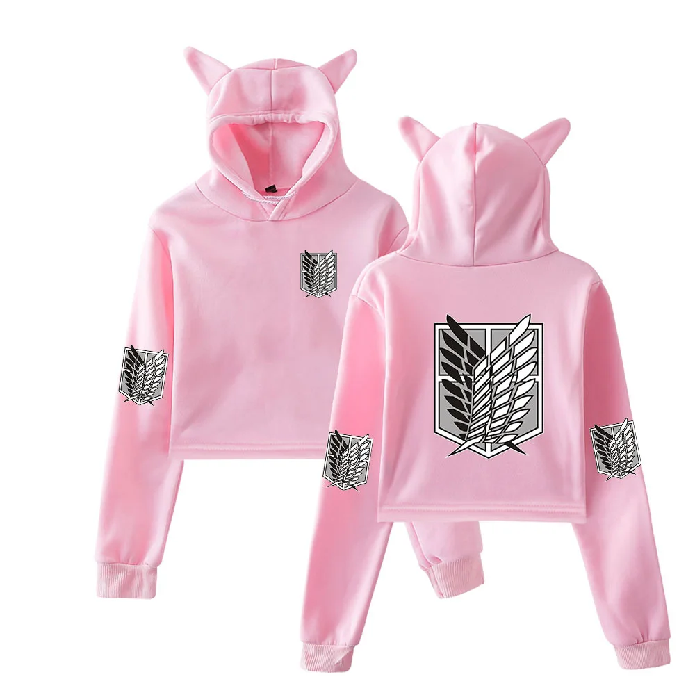 Укороченные толстовки с кошачьими ушками, женские свитшоты в стиле ...