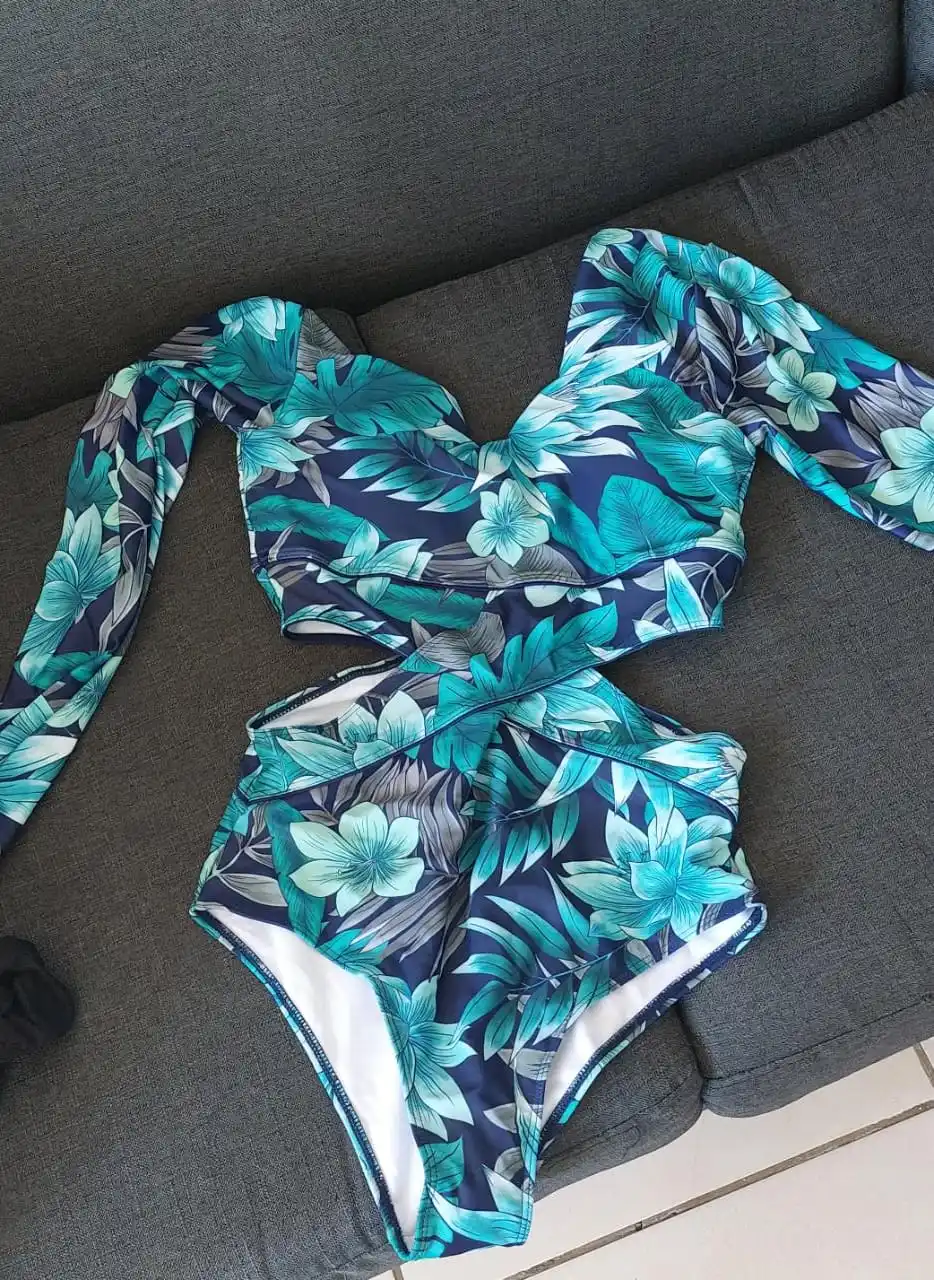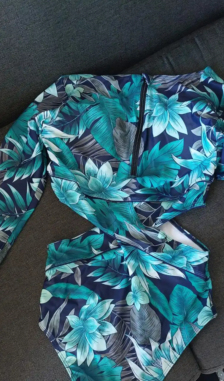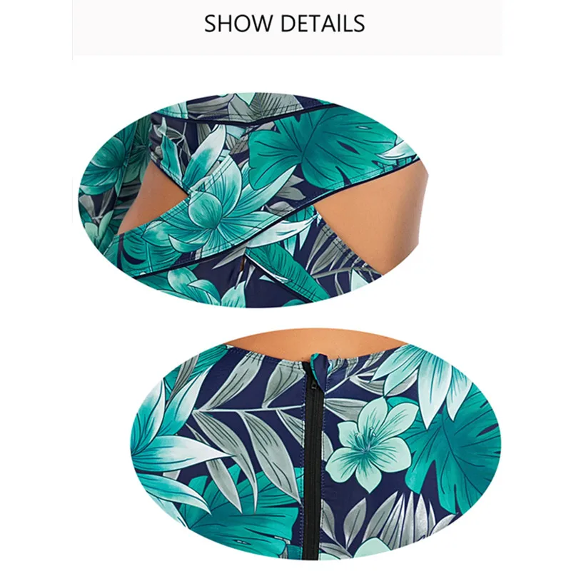 С цветочным принтом Цельный купальник, женский купальник, монокини, с длинными рукавами, с принтом, Женский ванный Комплект боди для серфинга купальный костюм XXL
