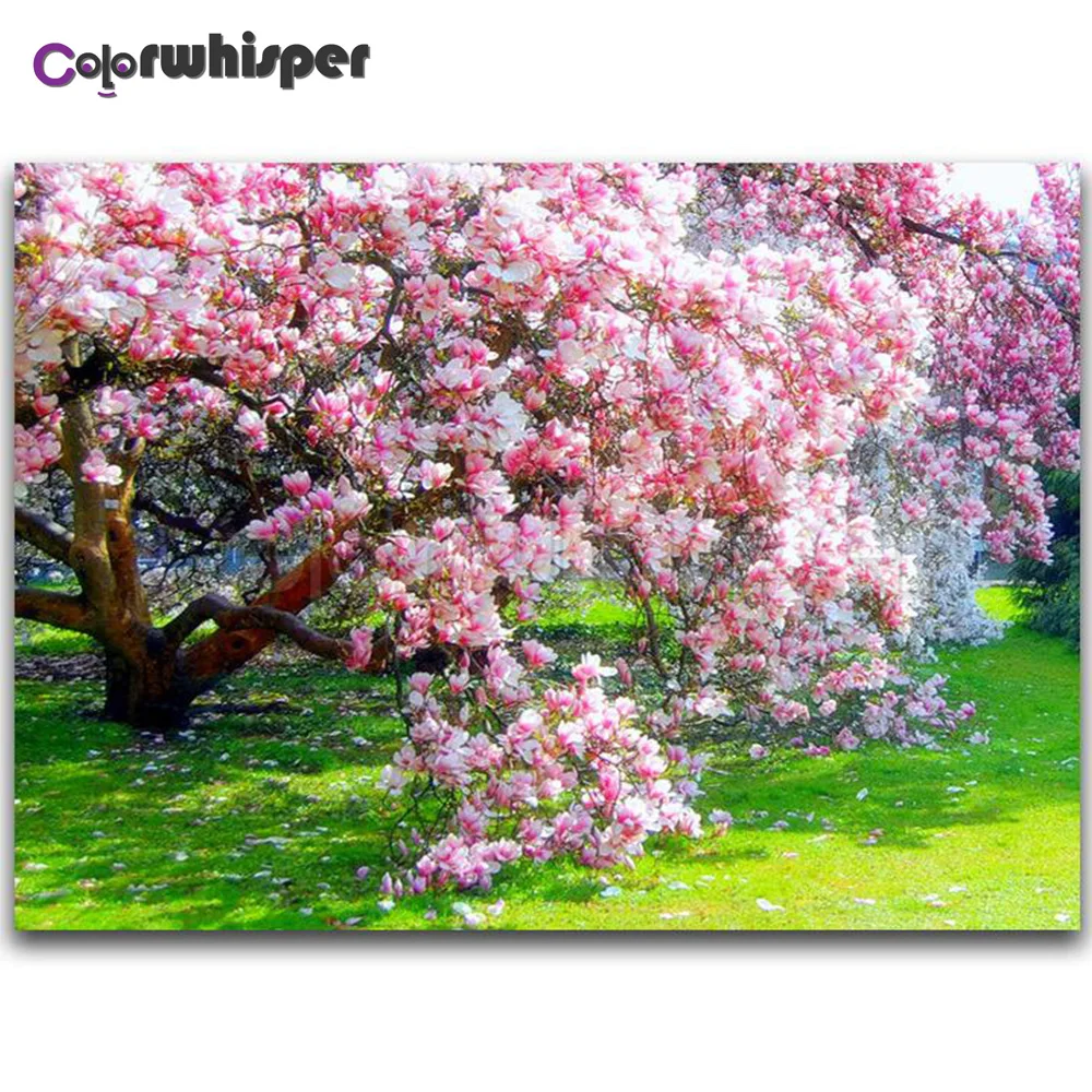 Алмазная живопись Z2093, картина из квадратныхкруглых страз, с изображением дерева магнолии, цветов, вышивка крестиком, мозаика