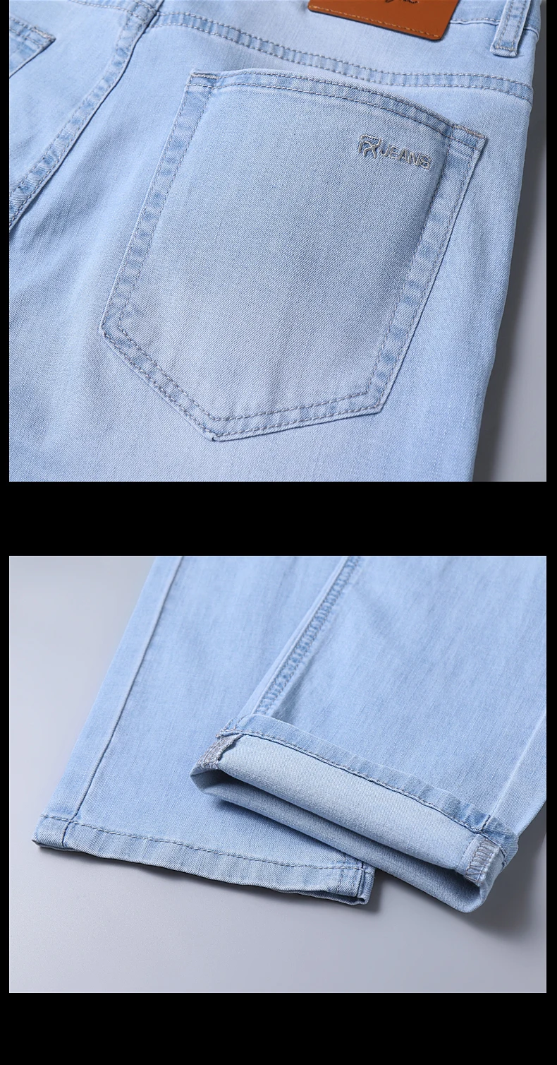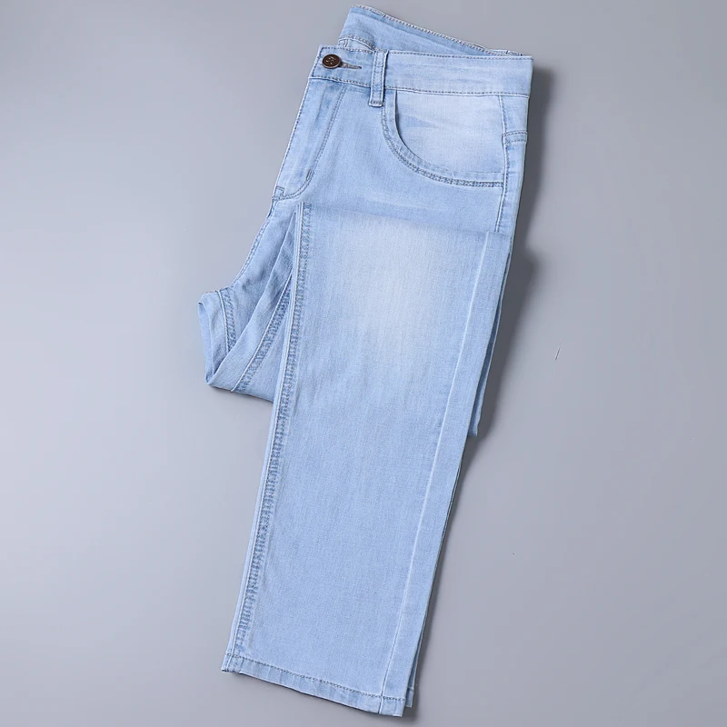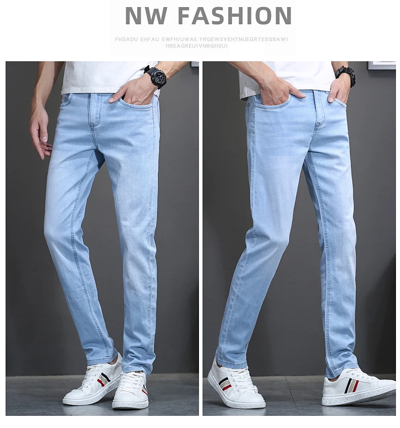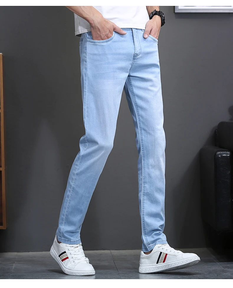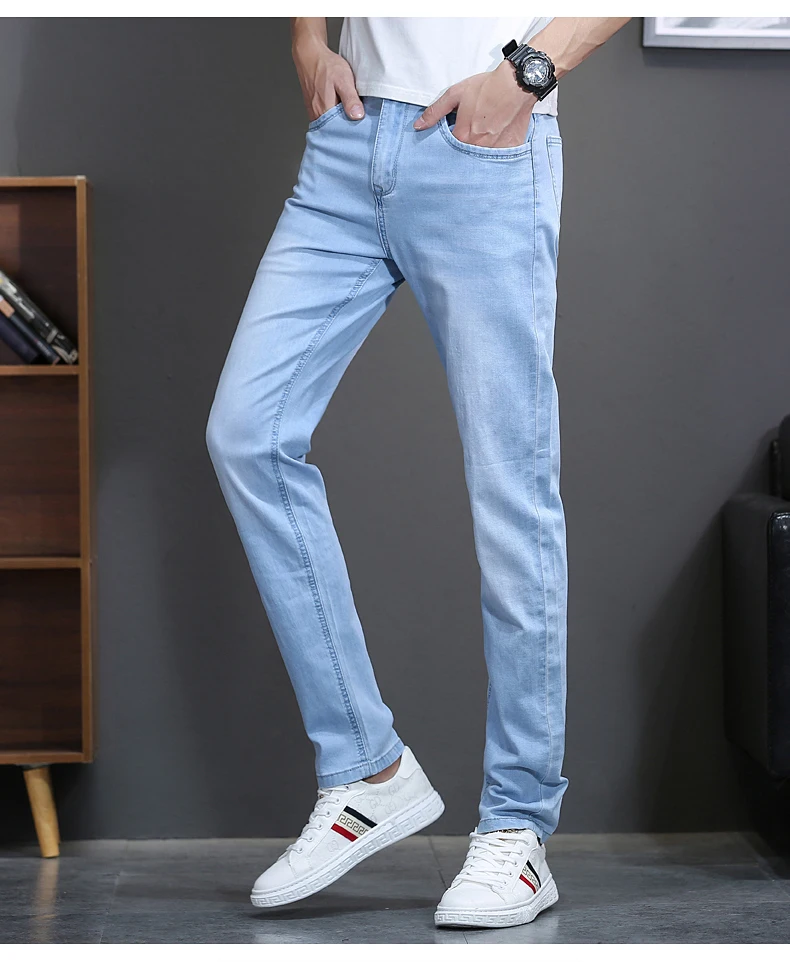 Джинсы мужские, тонкие, светло-голубые, стрейчевые, на весну и лето, 2021