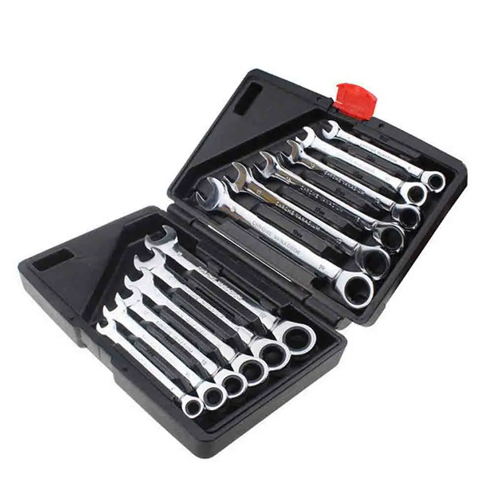 Набор комбинированных метрических гаечных ключей с трещоткой, 8-19 мм, тонкий зубчатый крутящий момент и Набор торцевых ключей для ремонта автомобиля, кольцевой гаечный ключ, ручной инструмент