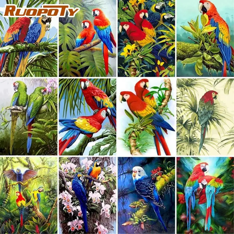 Рама RUOPOTY 60x75 см для рисования по номерам, раскрашивания попугаев, животных, роспись по номерам, рисование на холсте для домашнего декора