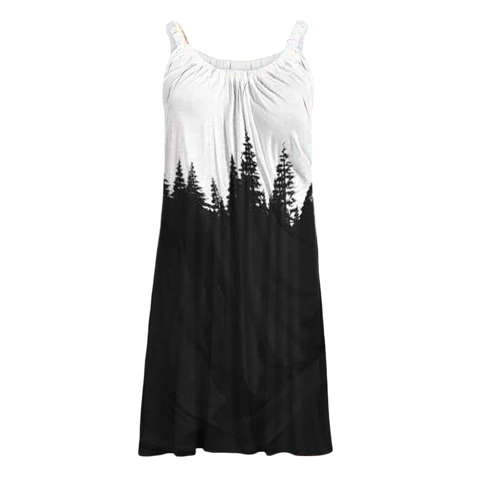 Женское Платье с принтом в виде Черного Леса, сарафан, сексуальное свободное пляжное Платье без рукавов с милым мультяшным принтом