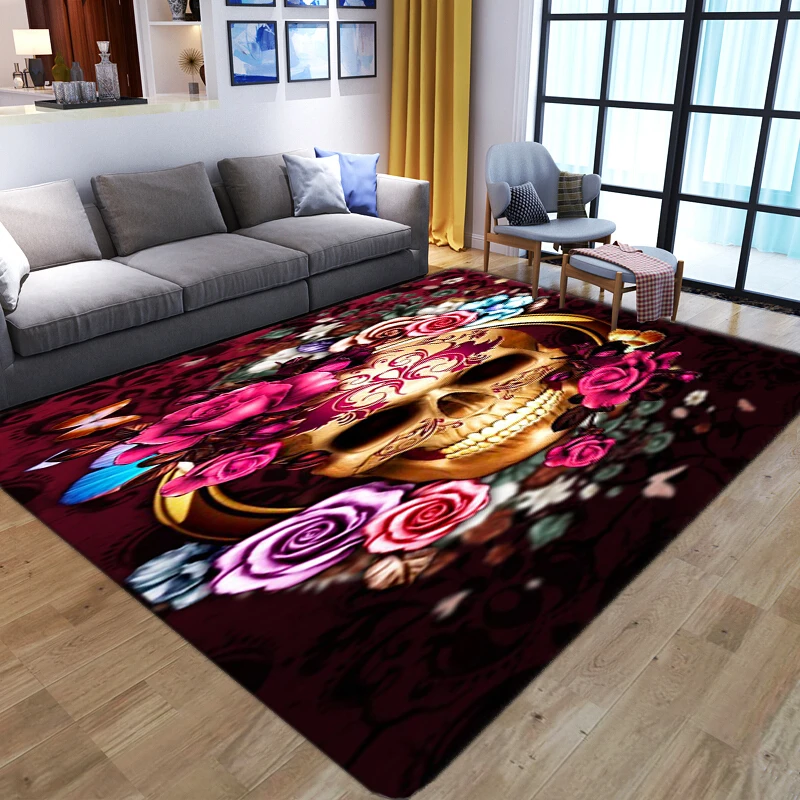 Фланелевые 3D прямоугольные напольные коврики с черепом, готический Противоскользящий коврик, декоративный большой ковер для Хэллоуина, спальни, настенный, ужасный дверной коврик