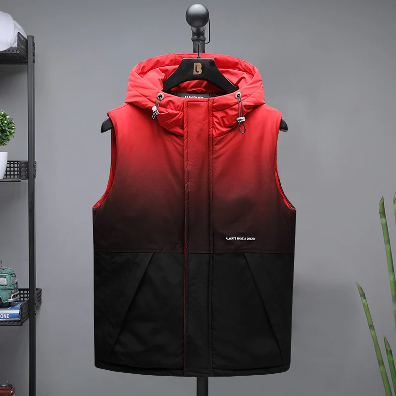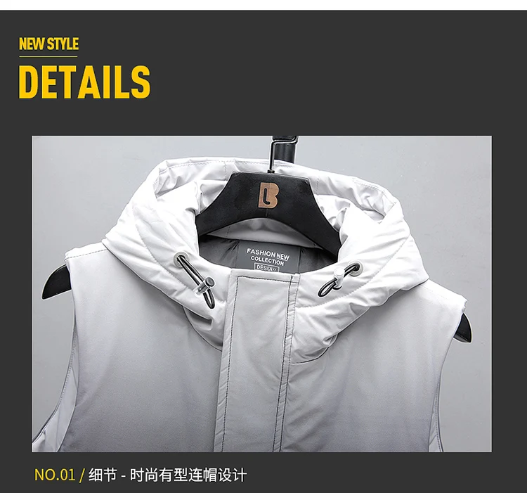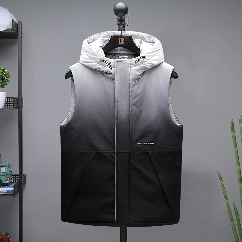 Жилет мужской пуховой без рукавов, теплая Толстая куртка с капюшоно...