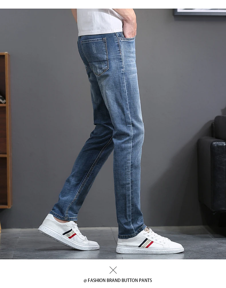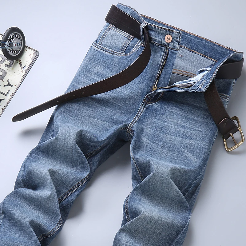 Джинсы мужские тонкие зауженные, классические модные повседневные Стрейчевые брюки из денима, брендовая одежда, цвет синийсерый, весна-лето 2021