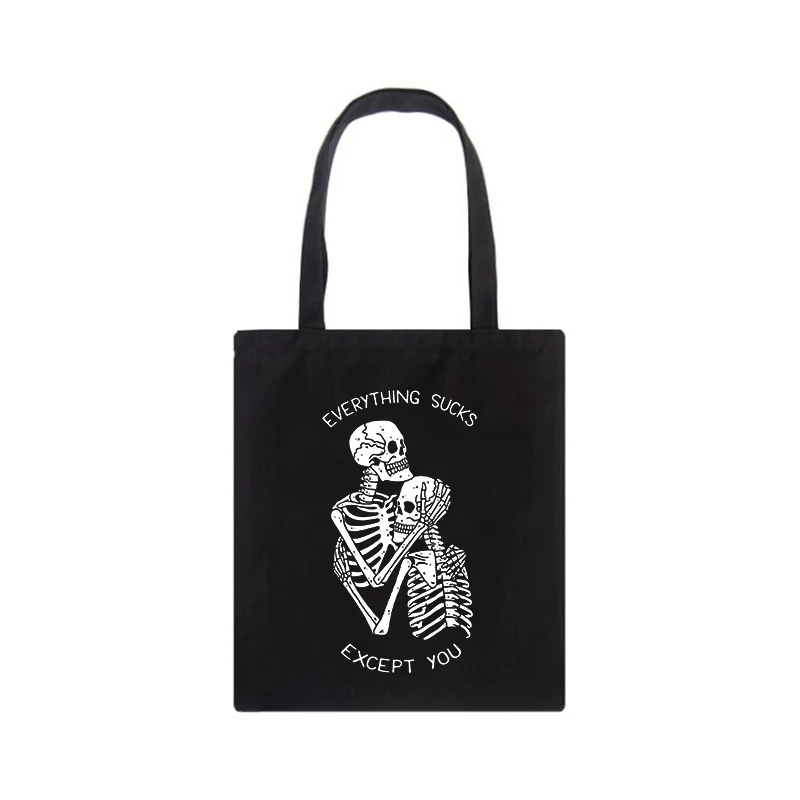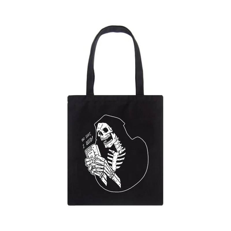 Холщовая Сумка с принтом в виде готического черепа, забавная Женская сумочка с надписью, повседневный темный мешок для покупок в стиле хип-хоп Харадзюку, вместительные сумки на ремне