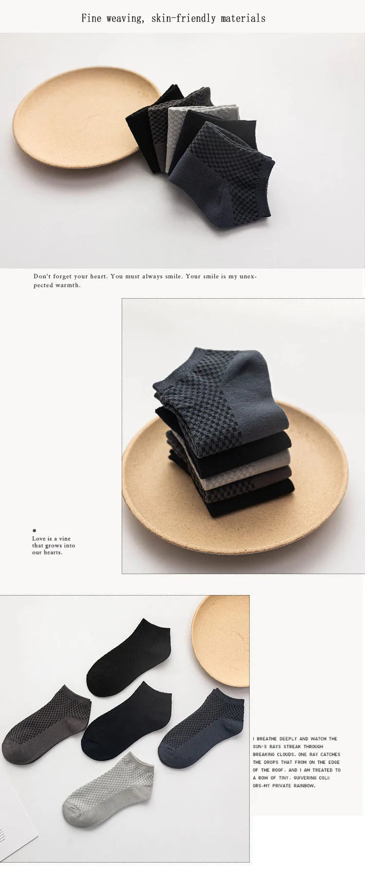 5 пар, 1 упаковка, хлопковые мужские короткие Дышащие носки, мужски...