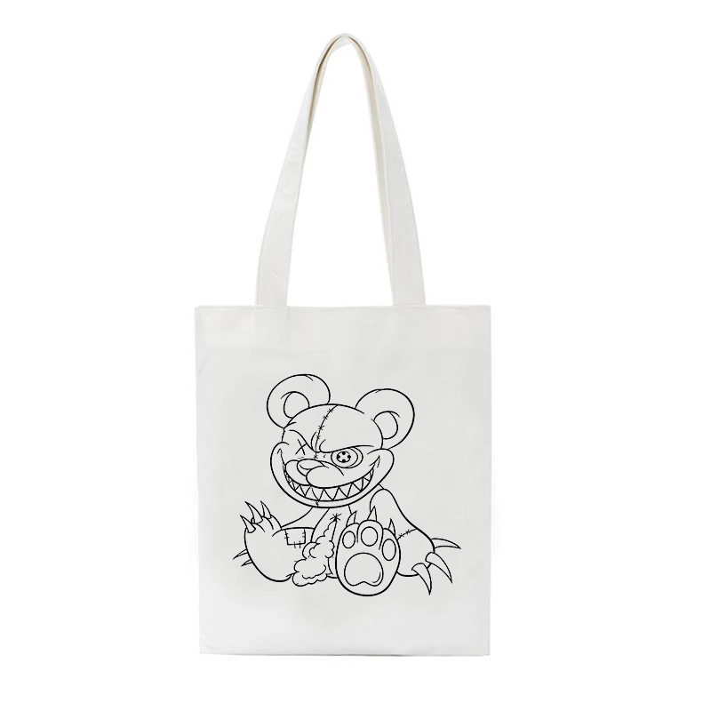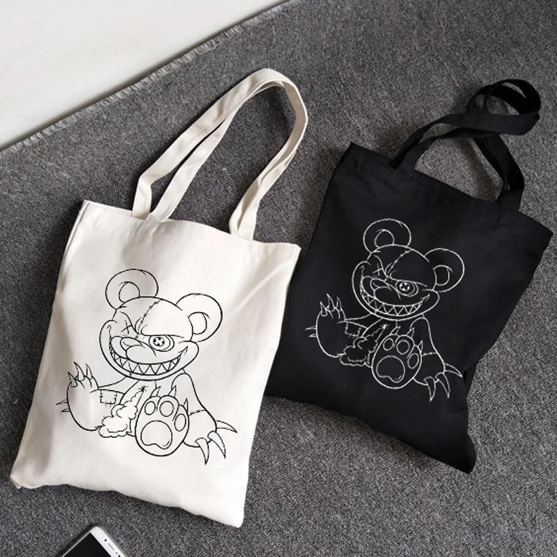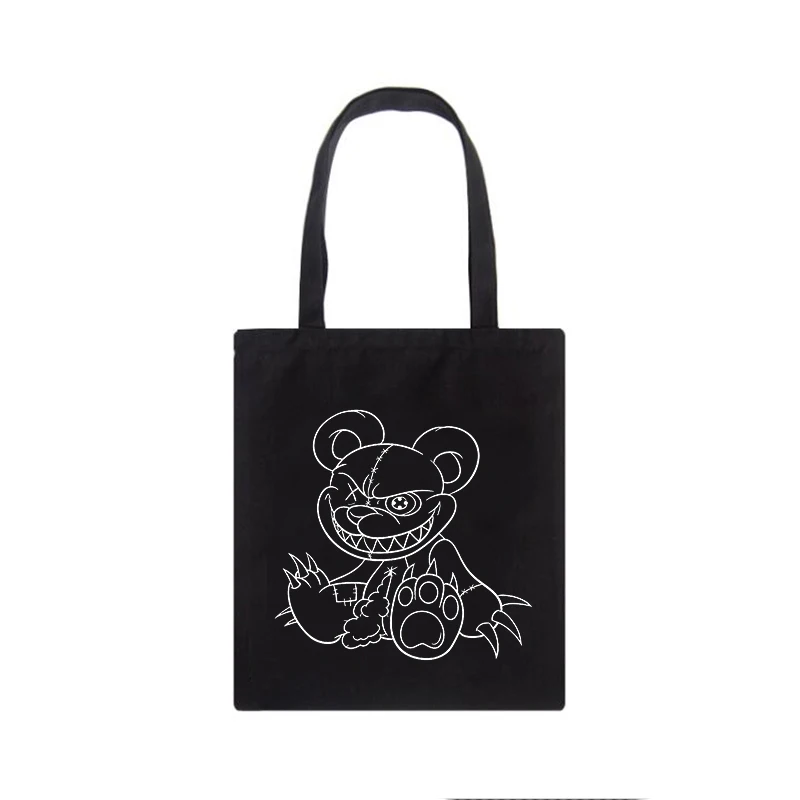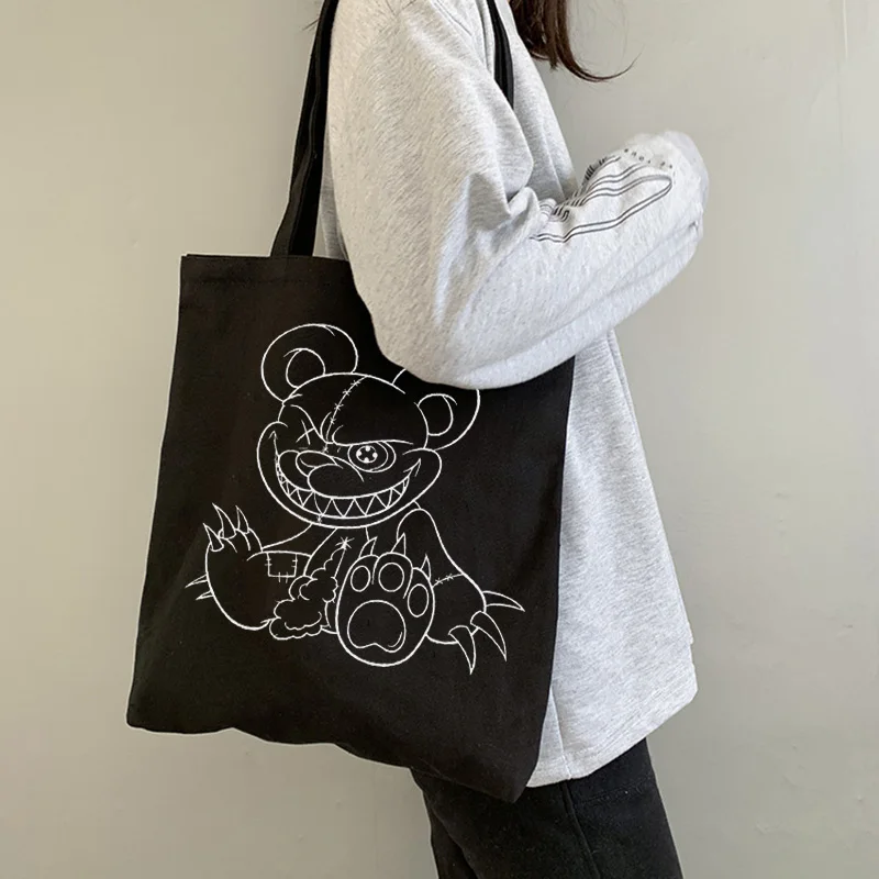 Холщовая уличная сумка с готическим медведем, женская сумочка для покупок, повседневный милый мультяшный саквояж на плечо в стиле Харадзюкупанкулззанг