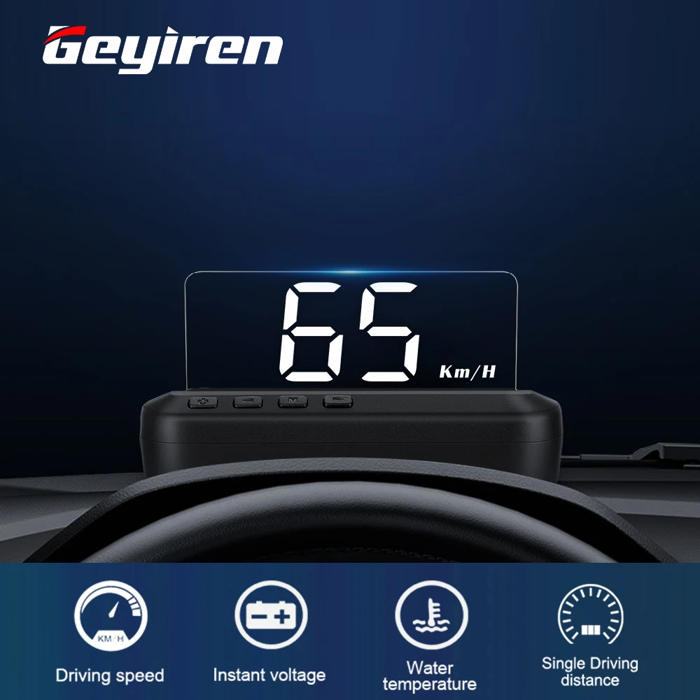 Автомобильный дисплей на лобовое стекло WIIYIIHUD Mirror C100, проектор скорости на лобовое стекло OBD2, сигнализация безопасности, температура воды, превышение скорости, оборот в минуту, напряжение