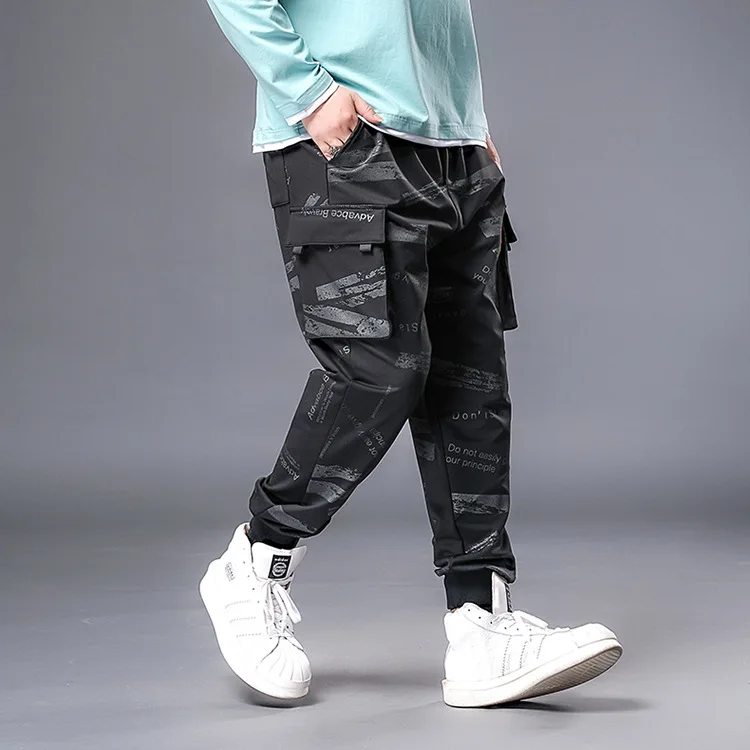 Мужские спортивные штаны, много карманов, шаровары в стиле хип-хоп,...