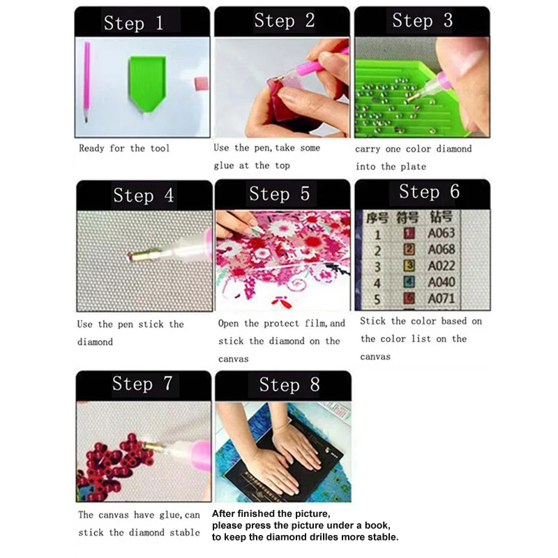 6. Для того, чтобы создать идеальную картину с бриллиантами, рисунки помещаются в одном месте каждый ряд s ymbols не должны оставаться приклеенными алмазами.