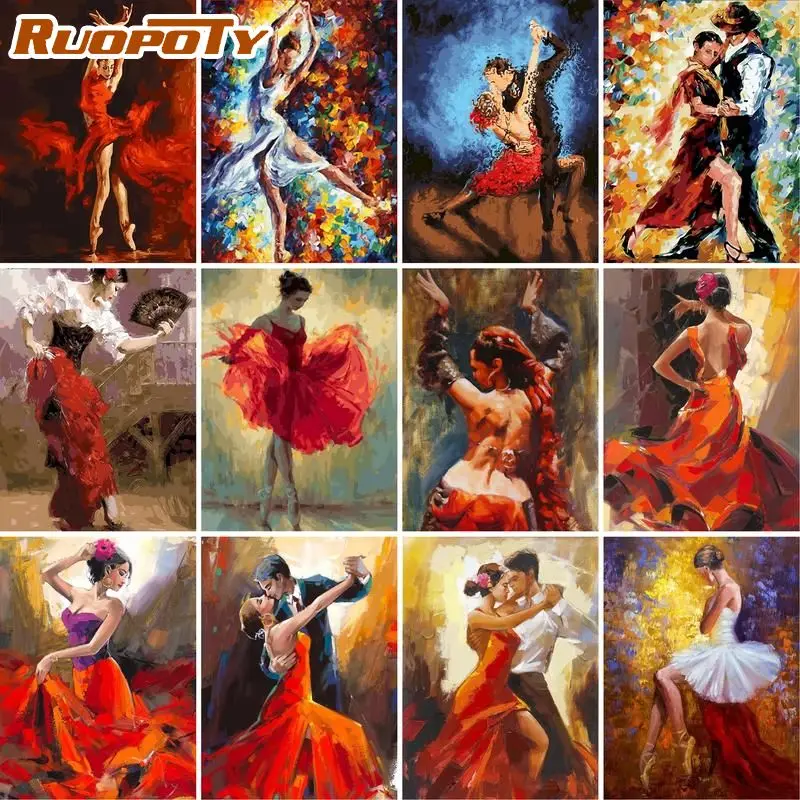 Рама для рисования по номерам RUOPOTY 60x75 см, абстрактная двойная фигура танца, рисование по номерам на холсте, для украшения дома, подарок