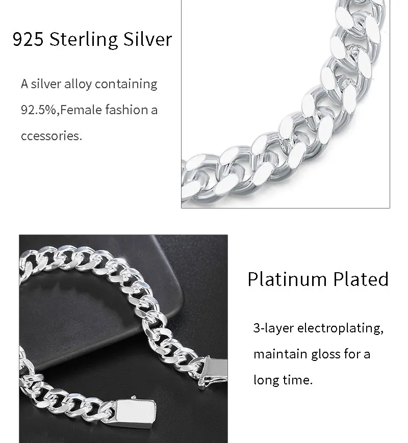 BAYTTLING серебряный цвет 8 дюймов 10 мм квадратная сторона кубинская цепь браслет для женщины мужчины Мода Шарм Свадебные ювелирные изделия подарок