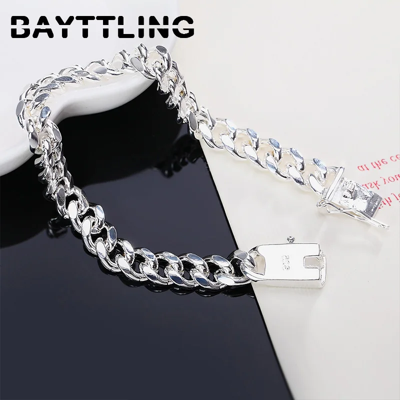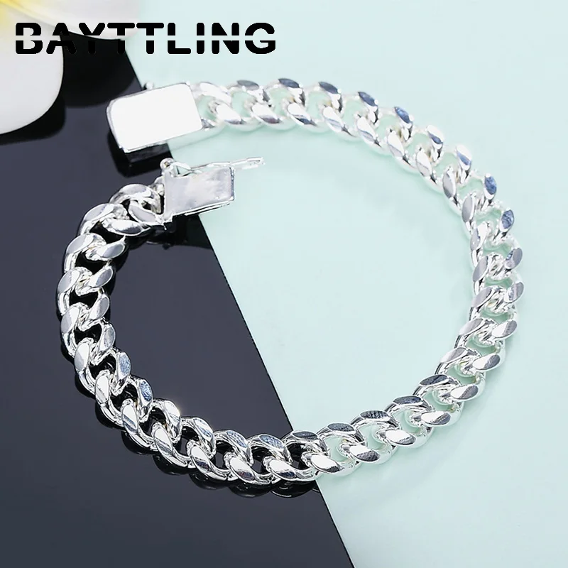 BAYTTLING серебряный цвет 8 дюймов 10 мм квадратная сторона кубинская цепь браслет для женщин мужчин модный очаровательный свадебный ювелирный подарок