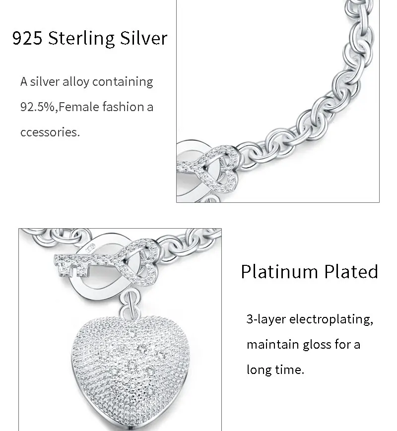 BAYTTLING серебряный цвет 8 дюймов AAA циркон ключ сердце кулон браслет для женщины мода Шарм Свадебные ювелирные изделия подарок