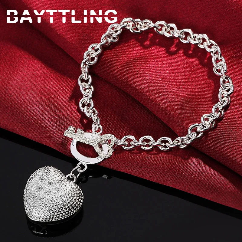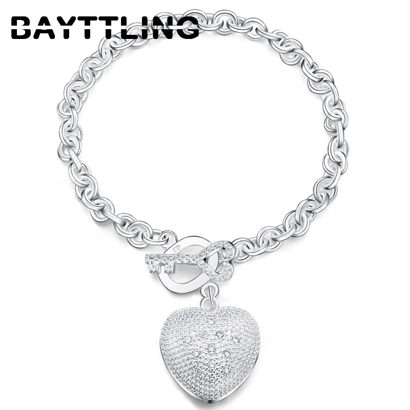 BAYTTLING серебряный цвет 8 дюймов AAA Цирконий ключ сердце кулон браслет для женщин Модный очаровательный свадебный ювелирный подарок