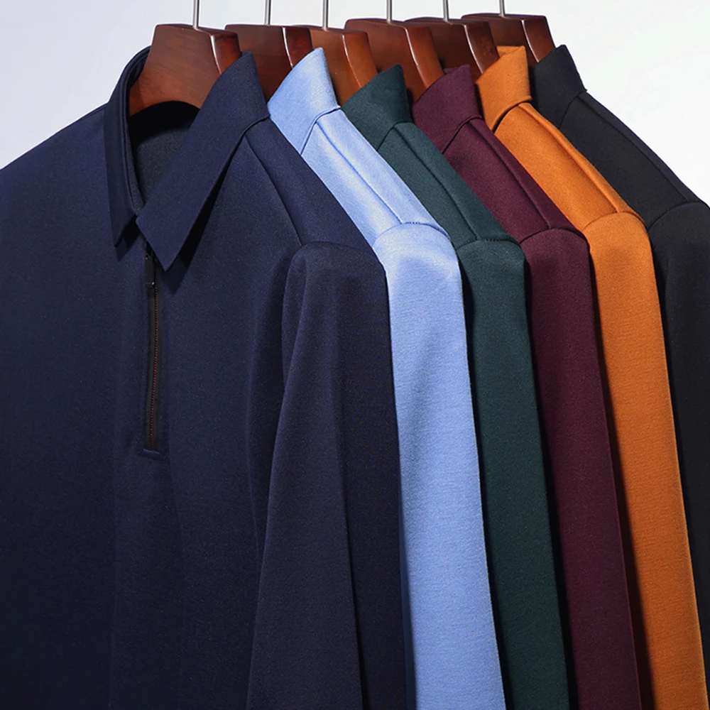 2022 футболка поло на молнии с длинным рукавом, мужская повседневная однотонная одежда, мужские рубашки поло, мужские модные облегающие топы, 0005