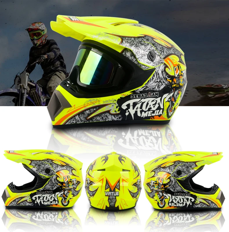 Шлем для мотокросса, мотоциклетный шлем на все лицо, мультяшный, де...