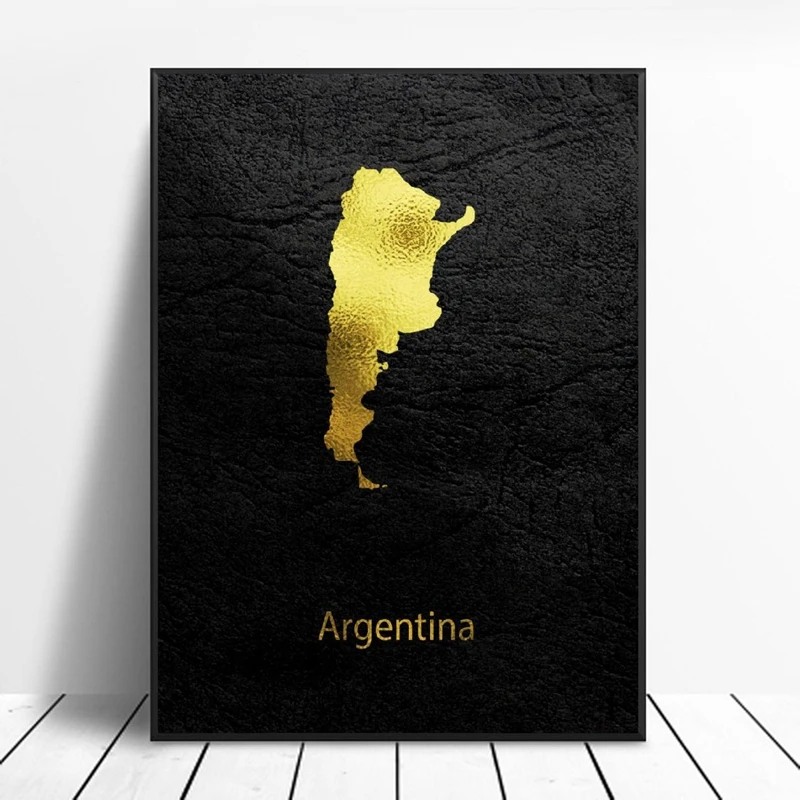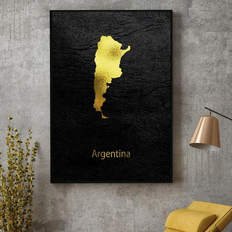 Золотая карта, Картина на холсте, Постер для семейной гостиной, кух...