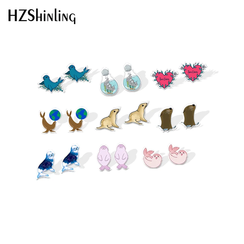 2021 новые милые серьги-гвоздики с морским львом серьги с животными из акриловой смолы эпоксидные ювелирные изделия ручной работы подарки для детей