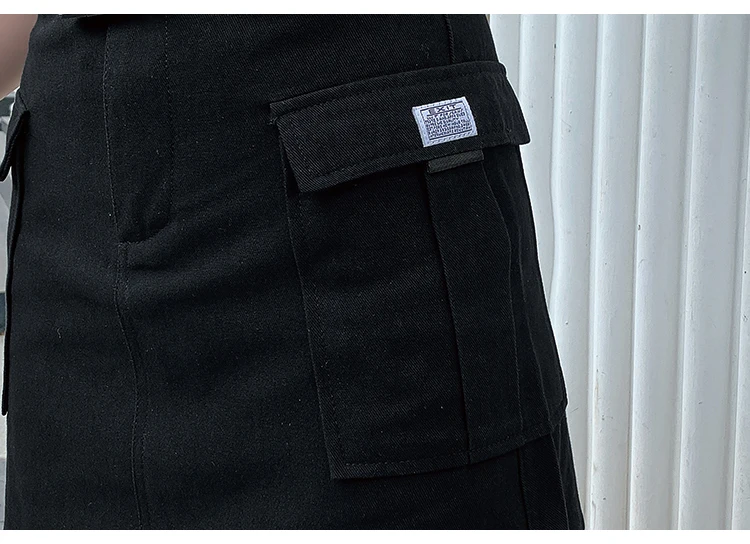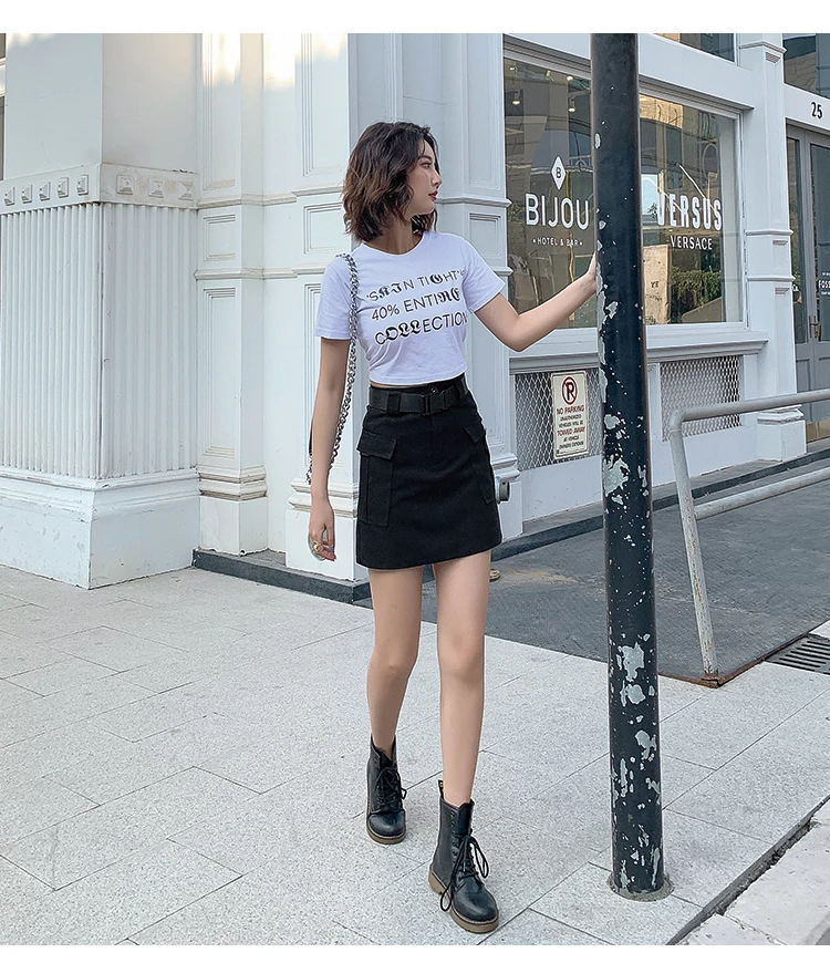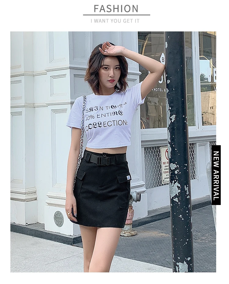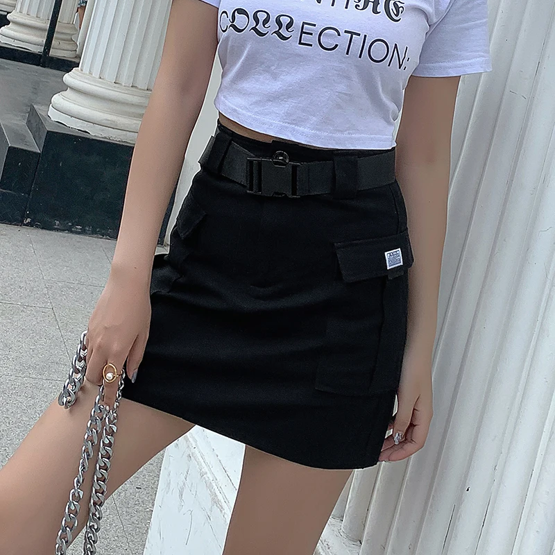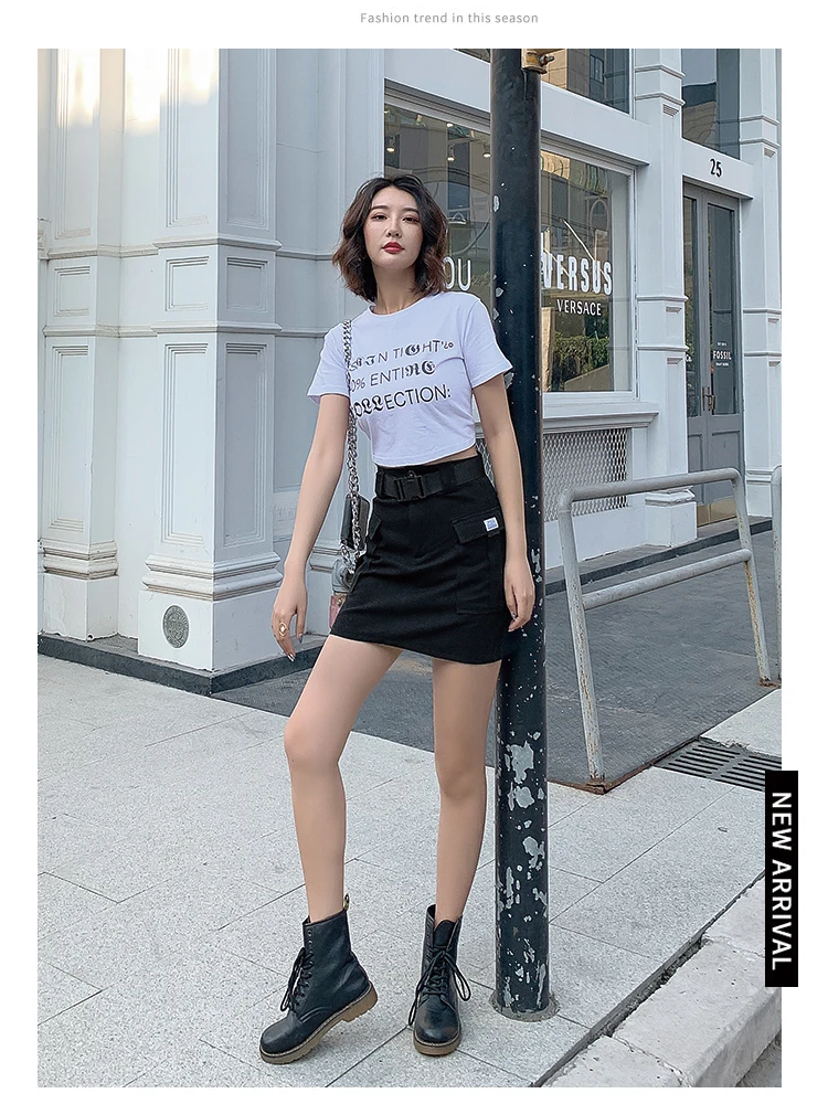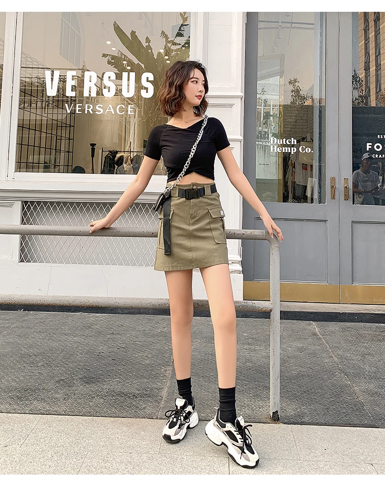 Корейская мода, высокая талия, карманы, Короткие трапециевидные юбки y2k для девочек-подростков, Летняя Повседневная мини-юбка цвета хаки, черный, с поясом, C281