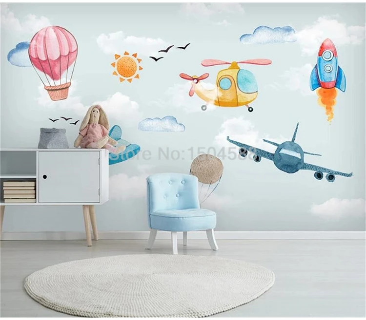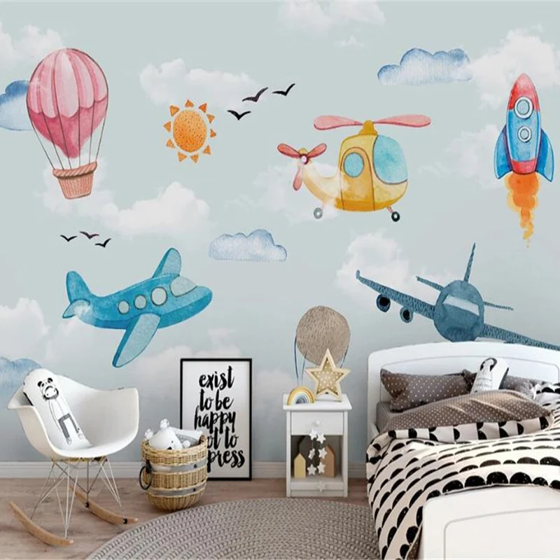 Пользовательские фотообои в скандинавском минималистичном стиле ручная роспись 3D мультяшный воздушный шар самолет фон для детской комнаты Настенные бумаги