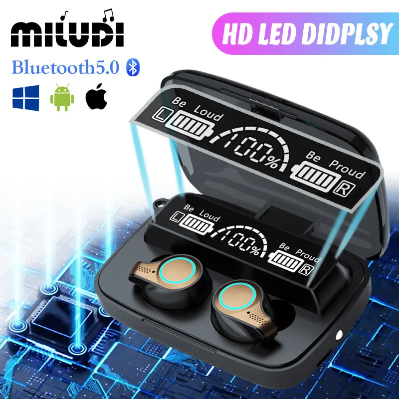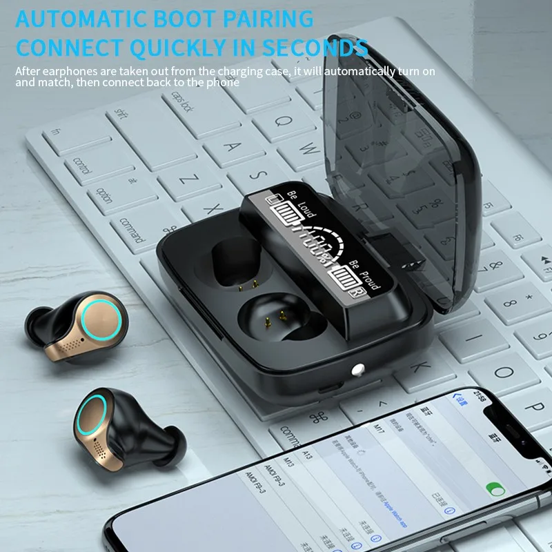 Беспроводные Bluetooth наушники M18, TWS наушники с сенсорным управлением, светодиодный цифровой дисплей, водонепроницаемые наушники для всех смартфонов с микрофоном