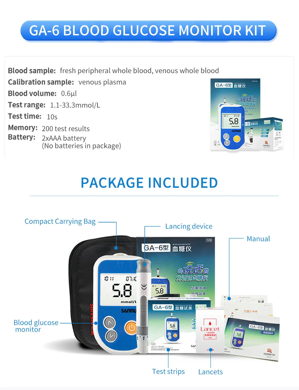 1 x GA-6 устройство для глюкометра (батарея не входит в комплект)