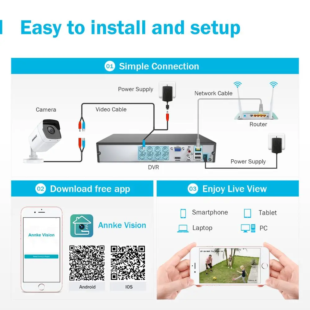 Вам надоела ваша настоящая система камеры, потому что она не может запечатлеть Фаравэй номерной знак и человеческое лицо, которое вы хотите увидеть? Вы устали удалять ваши видеозаписи снова и снова, чтобы освободить больше места для хранения? Отмените свои беспокойства, так как система камер видеонаблюдения ANNKE предлагает идеальное решение вышеуказанных проблем. Он обеспечивает 5 Мп Ультра HD кадры и позволяет четко видеть каждую крошечную деталь. Благодаря самому продвинутому H.265 + сжатия видео вы редко будете беспокоиться о том, что у вас не будет места для хранения дисков. Благодаря изысканному дизайну и исключительным функциям, система видеонаблюдения ANNKE станет вашим идеальным выбором.