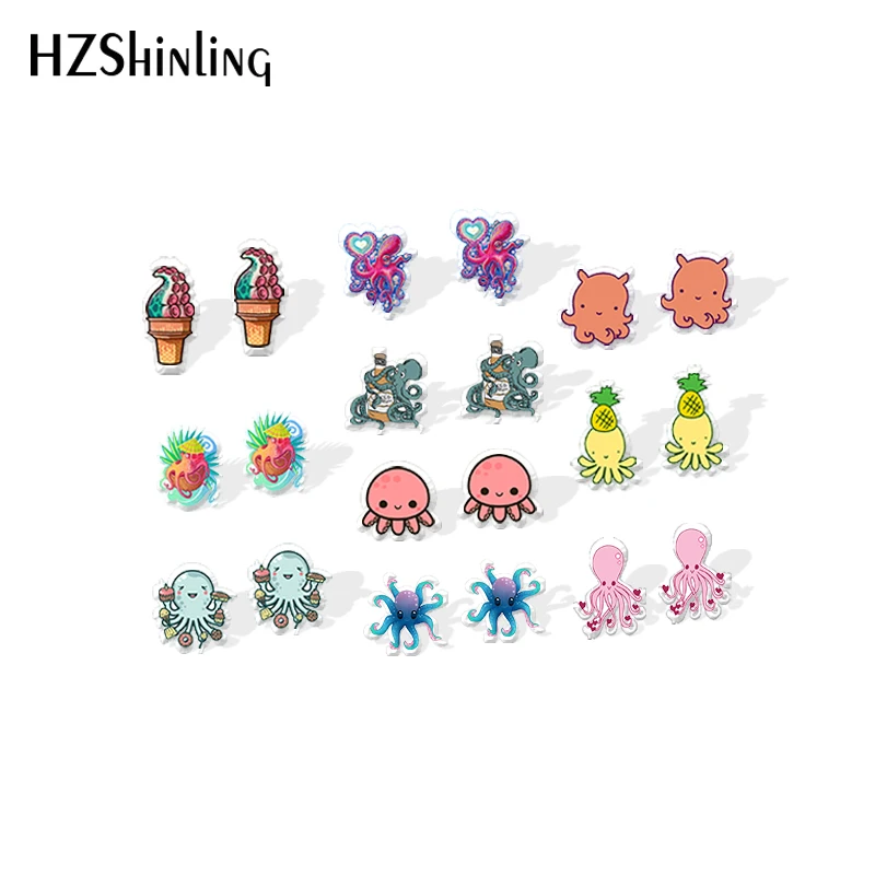 2021 Новые забавные серьги-гвоздики в виде осьминога, модные серьги из акриловой смолы, эпоксидные ювелирные изделия ручной работы, подарки для девочек