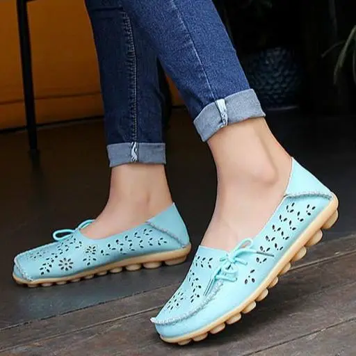 Туфли женские кожаные без шнуровки, повседневные Мокасины, обувь для вождения, обувь с вырезами для мам, повседневные