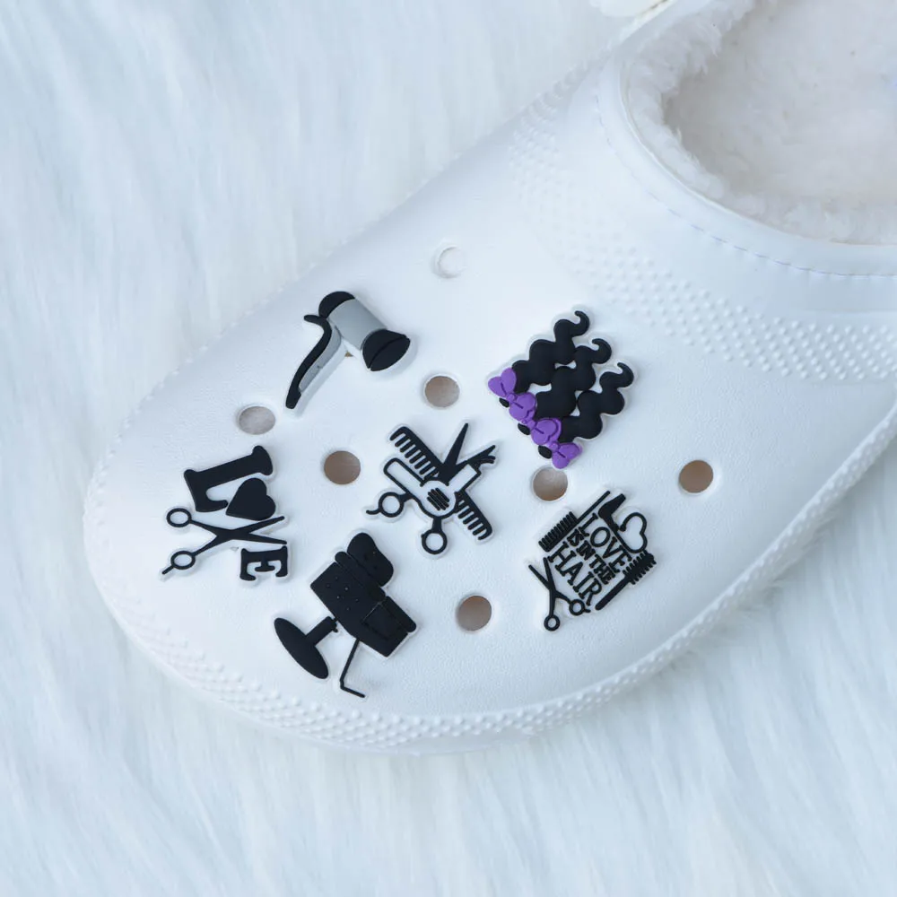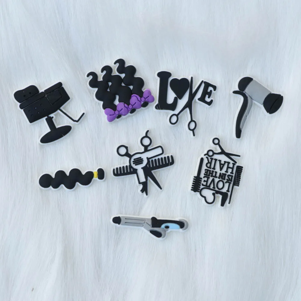 2D Парикмахерская щетка, расческа, ножницы, подвеска для обуви из ПВХ, косметология, косметология, Парикмахерская, аксессуары для обуви, ярко-розовые аксессуары