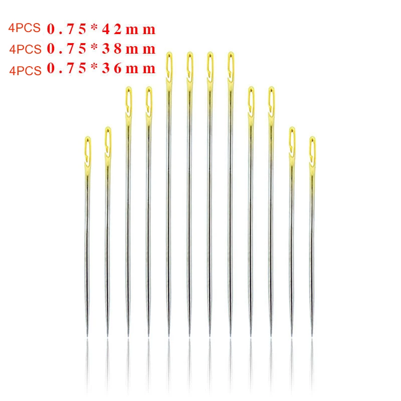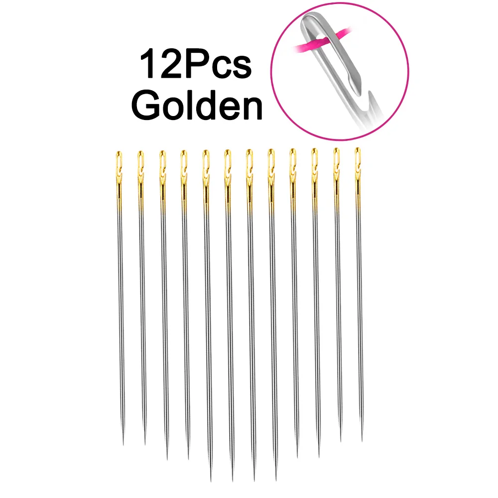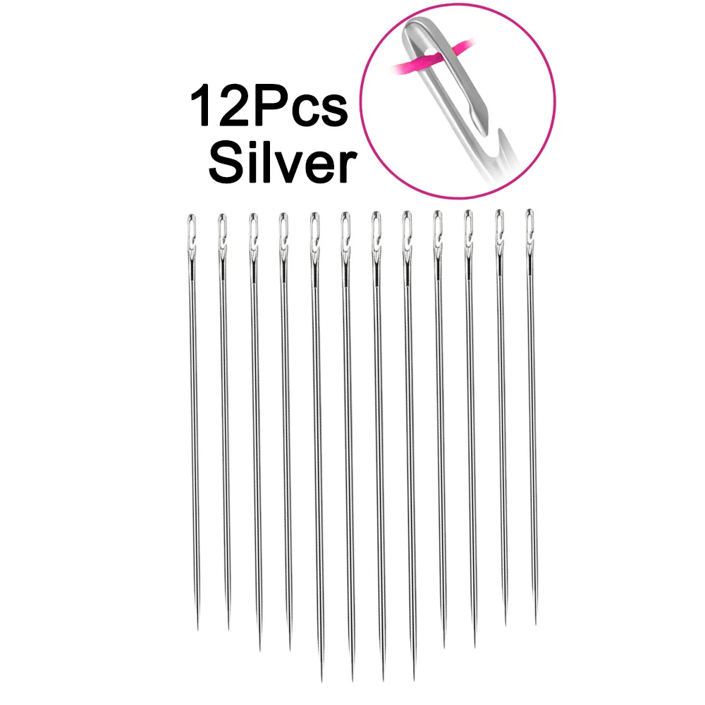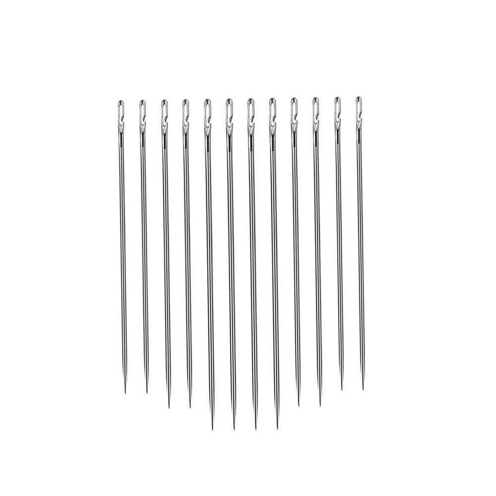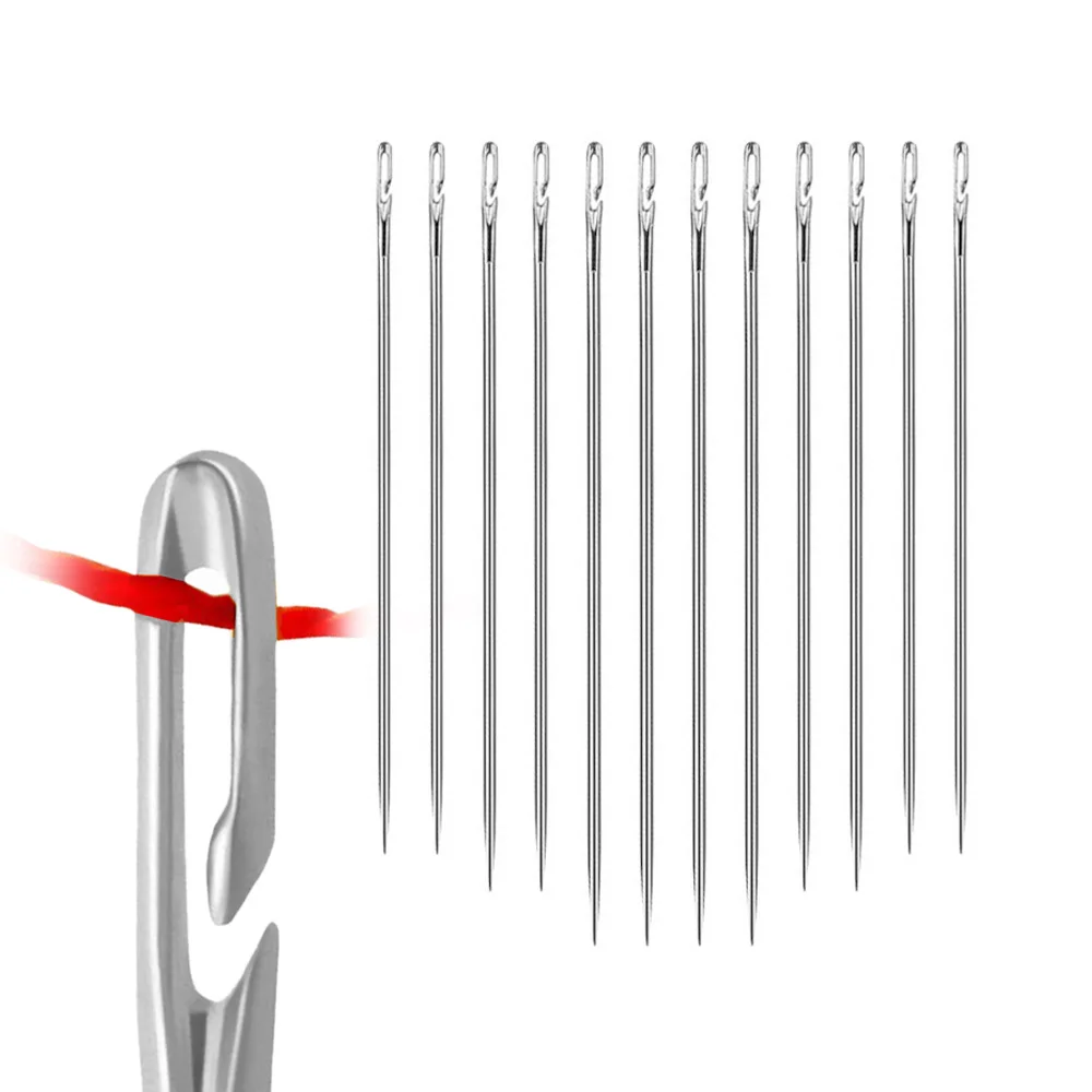 12 шт.пожилая игла с боковым отверстием, потайная игла с двойным отверстием для ручного домашнего шитья, швейная игла из нержавеющей стали, нить для одежды