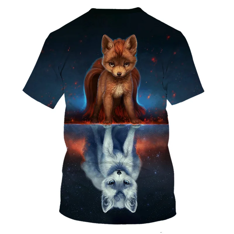Новинка 2021, летняя футболка с изображением животных, лисы, волка ...